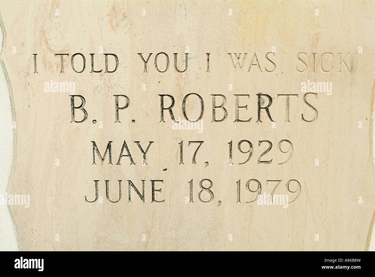 Told You I was Sick Comedy and Humor. Roberts, a woman who died in 1970 at age 50, was known as a hypochondriac and was often teased about her various imaginary ailments This epitaph comes from a cemetery in Thurmont, Maryland, and it's made many lists of top humorous tombstone quotes (along with, "I told you I was sick," from a Florida cemetery).